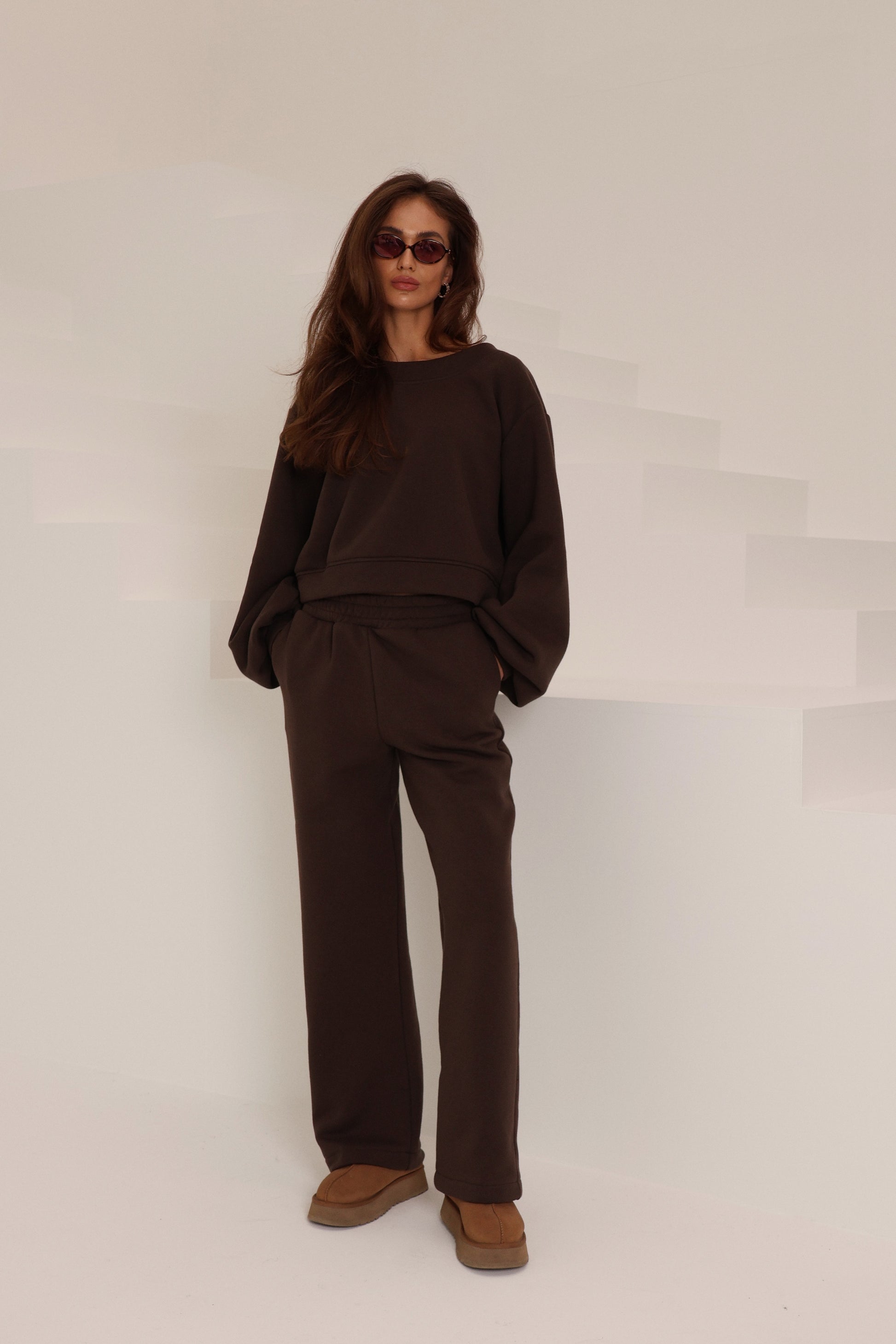 Bluza wykonana z przemiłej, ciepłej bawełny w kolorze czekoladowym.