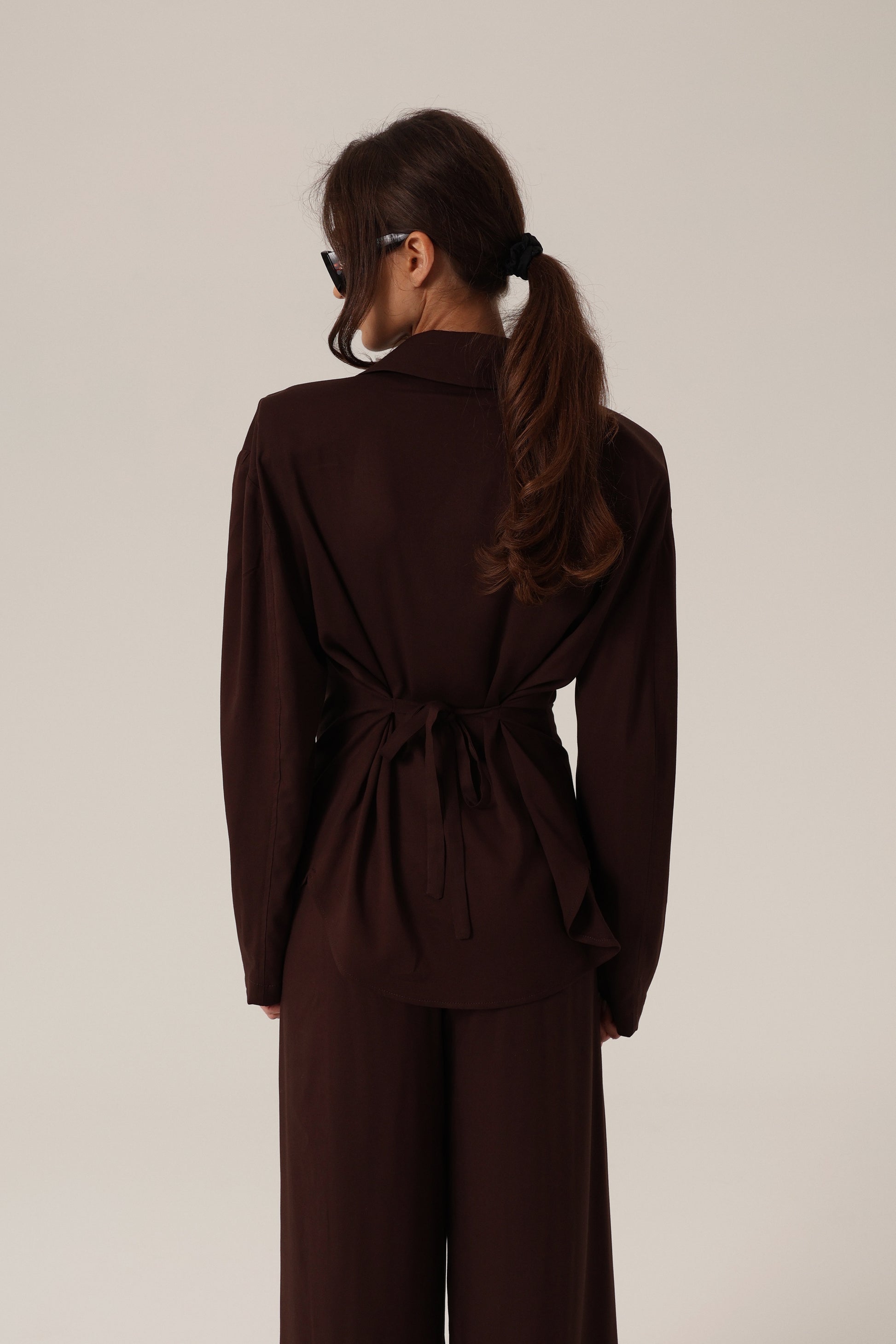 Koszula, która przypomina wyglądem marynarkę, wiązana z tyłu lub z przodu. Idealnie podkreślająca talię, posiada bardzo duze poduszki. Wykonana z tkaniny wiskozowej, przemiła w dotyku o wysokiej gramaturze, nie prześwituje.
