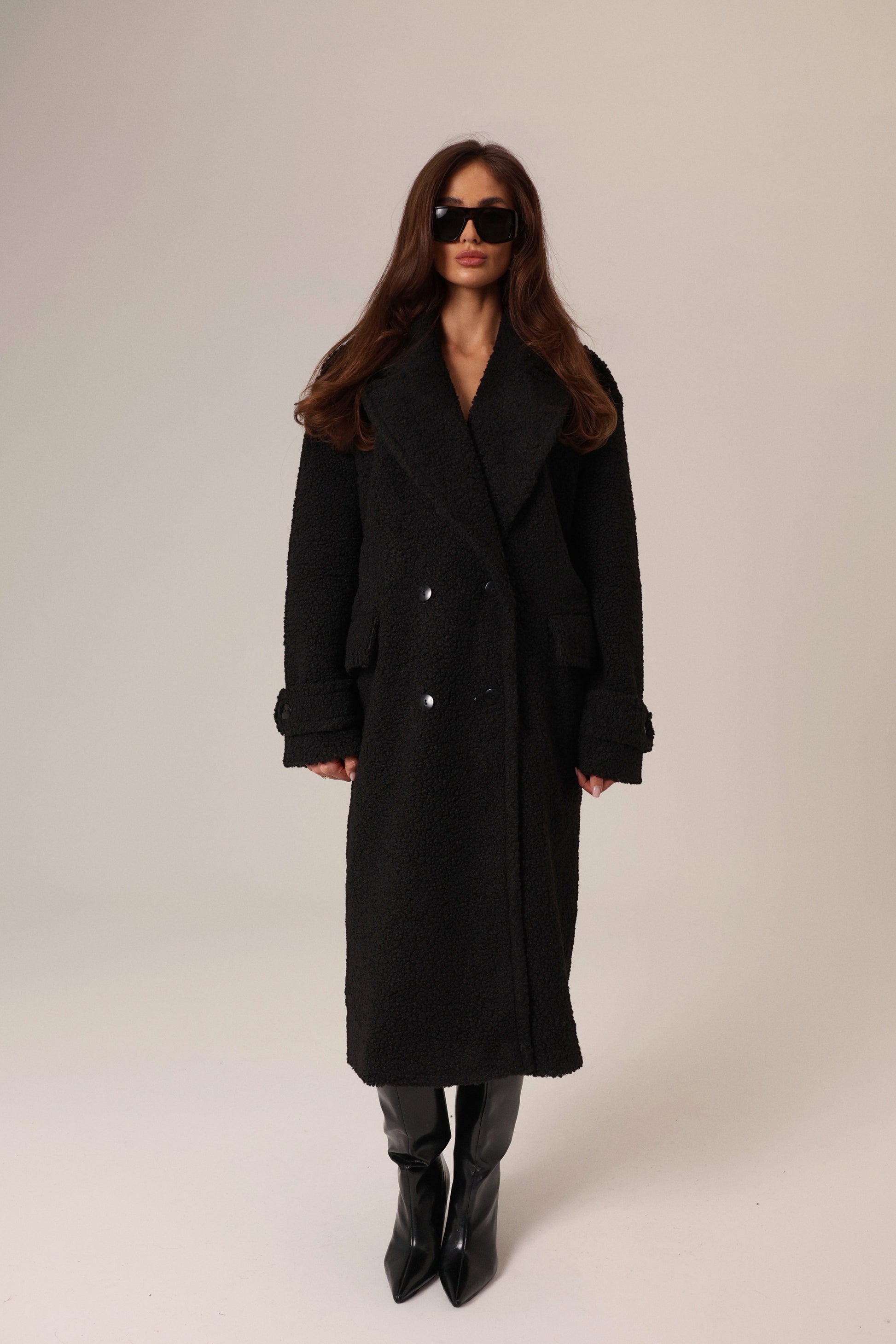 Nasze bestsellerowe futro Sophie w kolorze czarnym z dodatkiem wełny.