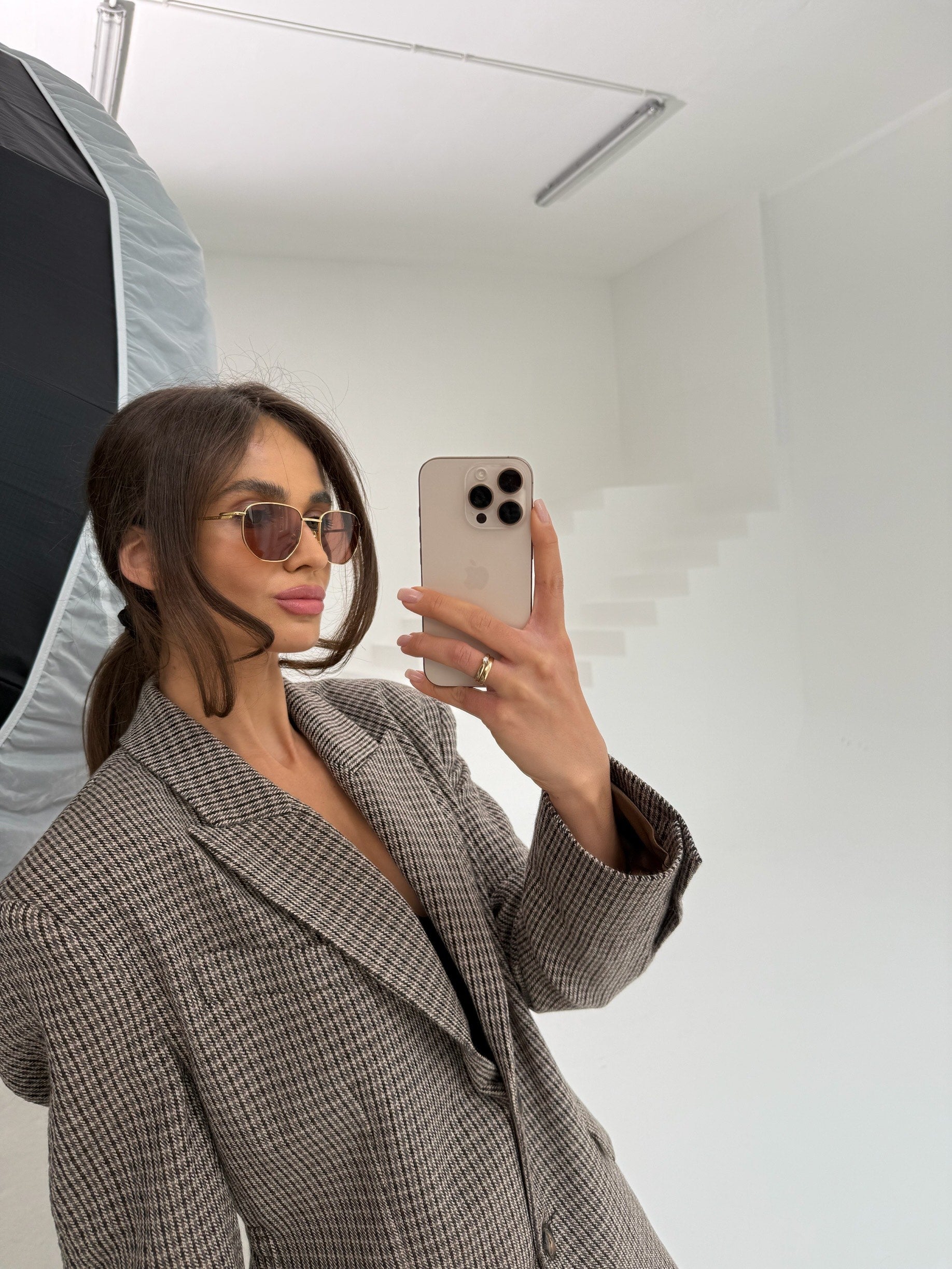 Marynarka w przepiękny tweedowy wzór wykonana z wełny w jesiennych kolorach.