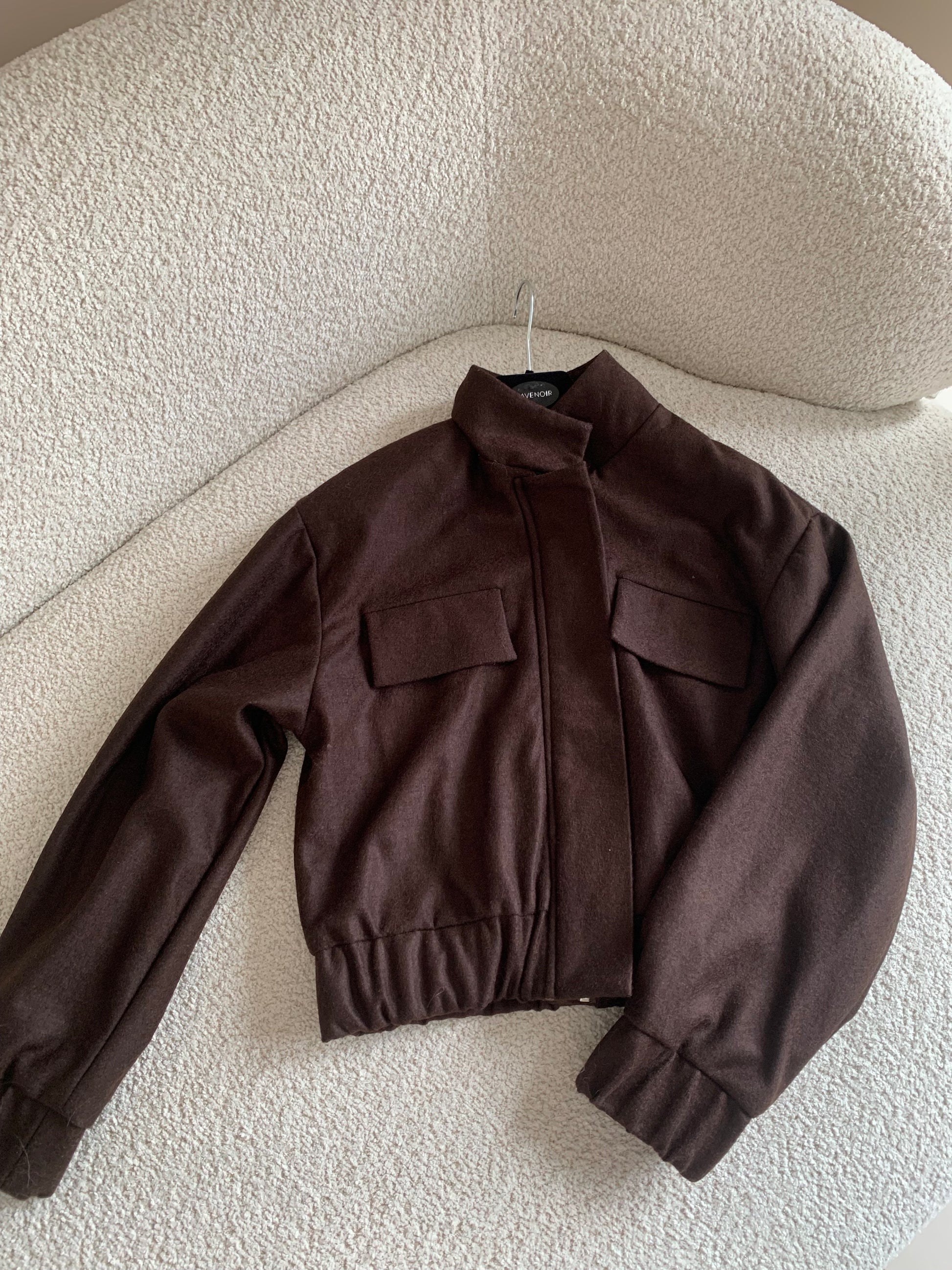 Najnowsza bomberka wykonana z wełny parzonej w kolorze czekoladowym.