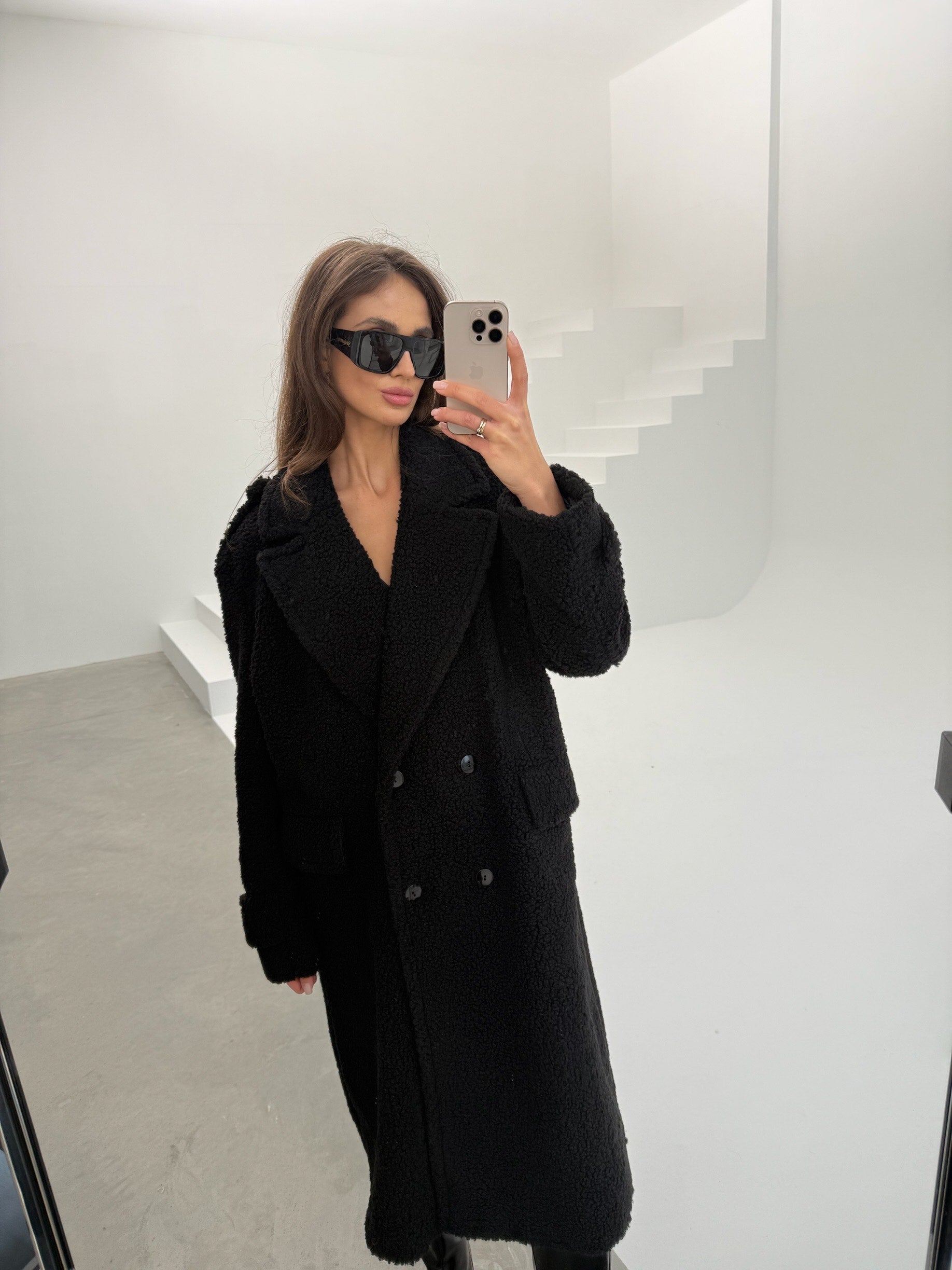 Nasze bestsellerowe futro Sophie w kolorze czarnym.